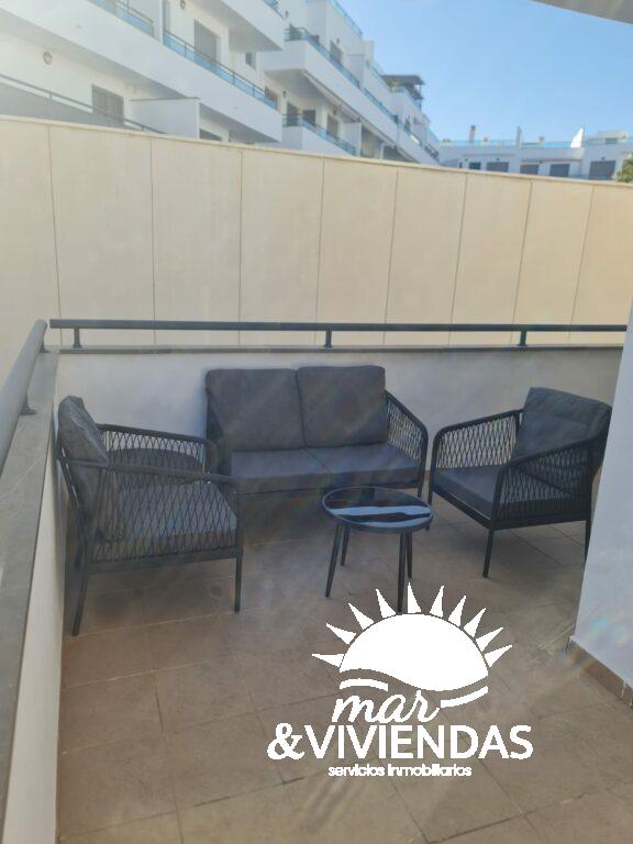 Urb. El Pinar de Garrucha, vivienda de 3 dormitorios en planta baja con ascensor, capacidad para seis personas ( 2 cama matrimonio 150cm , y una cama nido con dos 2 camas 105cm ) dos baños completos uno de ellos en suite, ( uno con bañera y el otro con plato de ducha) cocina independiente equipada de menaje y electrodomésticos,( lavavajillas, horno, microondas, etc) terraza amplia que se accede desde el salón y dormitorio principal con mesa de jardín y seis sillas, aire acondicionado con bomba de calor centralizado y ventilador de techo en todas las habitaciones, todo exterior y muy luminosa . la urbanización cuenta con dos piscinas comunitarias rodeada de zonas verdes, pista de pádel, zonas de juegos infantiles.