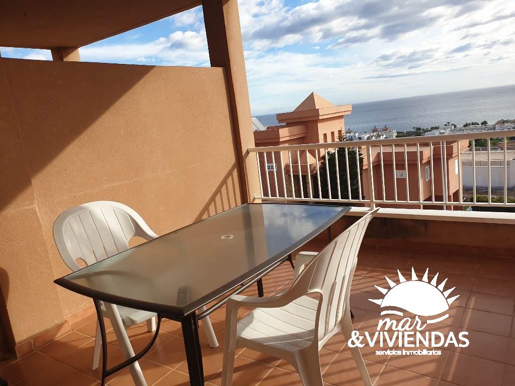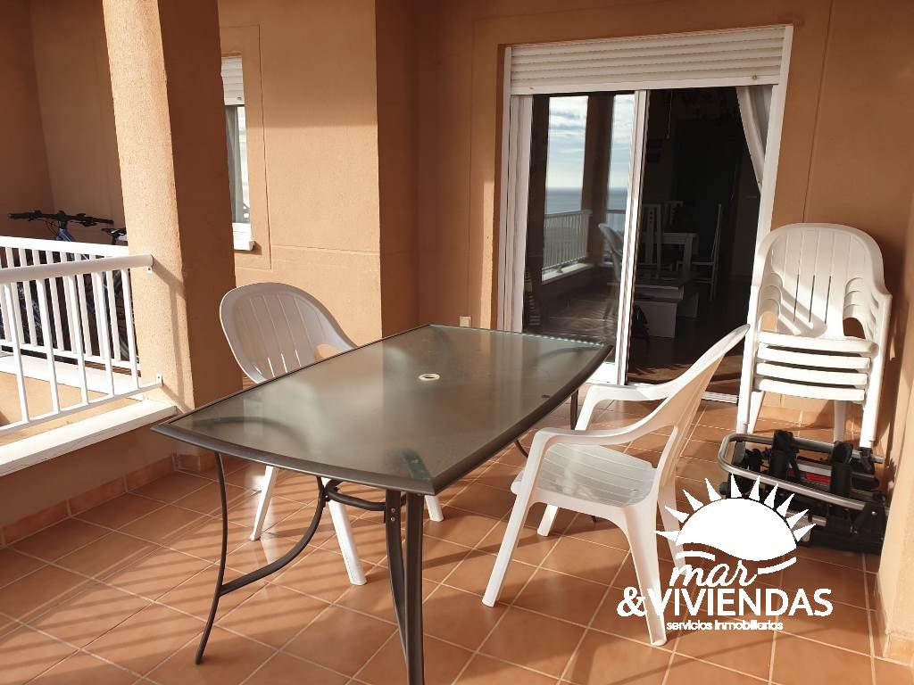 Apartamento en primera planta de dos dormitorios con armario empotrado, (cuatros camas individuales) cocina independiente equipada de menaje y electrodomésticos, lavadero, amplio salón comedor con salida a la terraza con impresionantes vistas al mar, cuenta con una plaza de parking subterránea.