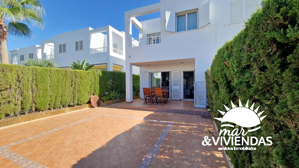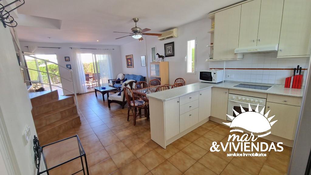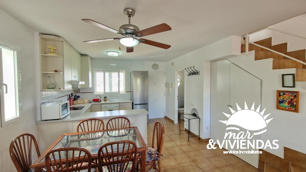 vivienda independiente en Urbanización  Inti :  Se encuentra a 250metros aproximados de la playa , la casa consta de 104 m² en tres plantas. En la primera  planta tiene tres dormitorios , un baño completo   y dos terrazas . En la planta baja, el salón comedor, la cocina equipada de menaje y electrodomésticos, un baño completo  y dos porches que dan al jardín. El sótano tiene una habitación con dos camas individuales . Le rodea una parcela ajardinada apta para barbacoa y de recreo para niños. Piscina con acceso desde la casa , garaje exterior ,  parque comercial con servicios a 1000metros aproximados.