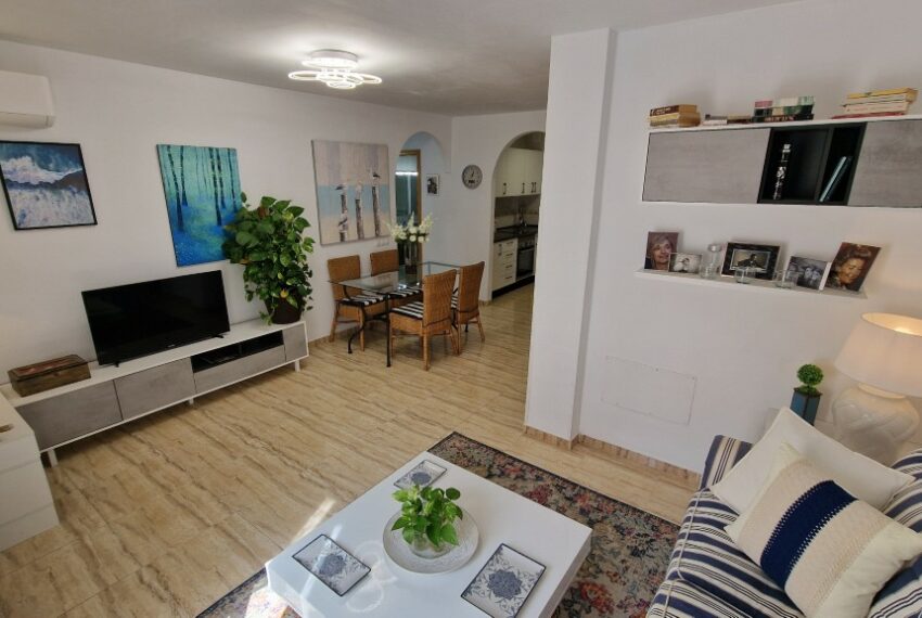 Urb. El Pinar de Garrucha, vivienda de 2 dormitorios en primera planta, con dos baños completos uno de ellos en suite, cocina americana equipada de menaje y electrodomésticos, terraza amplia que se accede desde el salón y dormitorio principal (aire acondicionado en el salón por split y ventiladores de techo en los dormitorios), dispone de plaza de garaje subterránea.